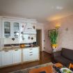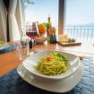 All'esterno il giardino è attrezzato con barbecue in muratura, tavolo relax e due sdraio coordinate con tenda parasole elettrica in grado di coprire tutto il portico, all'interno in un contesto shabby il soggiorno dispone di grande frigorifero con freezer, cucina in muratura con fornelli a induzione, forno, microonde, tostapane, bollitore e caffé da moka, TV a schermo piatto, divano letto e tavolo con vista panoramica dalla grande finestra; è presente la lavatrice. La camera matrimoniale è ben attrezzata con armadi e comodini, ed è caratterizzata dall'azzurro vivace della parete dietro il letto. Nel bagno i sanitari sono sospesi, il riscaldamento è a caloriferi. A disposizione un grande box auto con ascensore al piano.